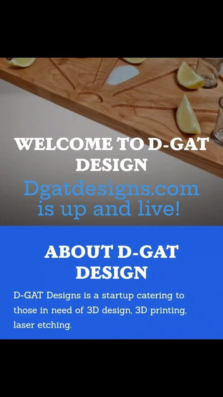 D-GAT Designs is a startup catering to those in need of 3D design, 3D printing, laser etching.